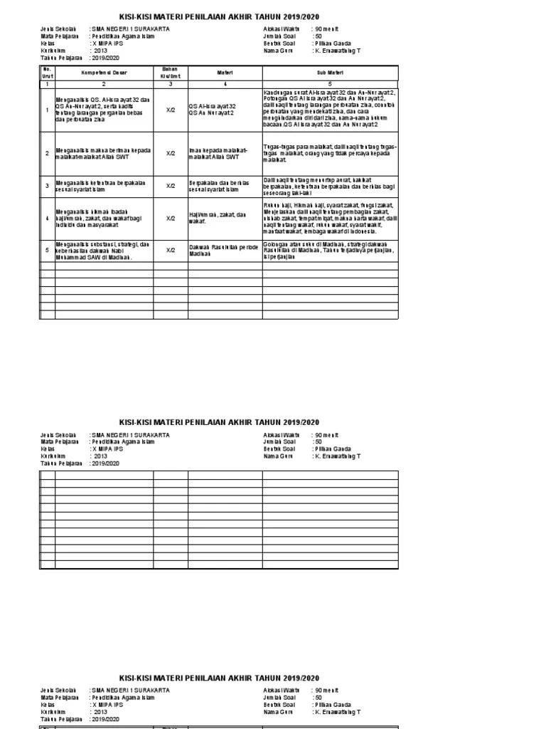 Saat ini evaluasi akhir semester untuk peserta didik dari waktu ke waktu mengalami pergantian istilah, yang tadinya dikenal ujian kenaikan kelas . Inilah pembahasan soal dan jawaban latihan uas, ukk dan pas untuk siswa kelas 10 10 sma / smk / pelajaran pendidikan agama islam (pai) Contoh soal pai kelas 10 semester 2 beserta jawabannya pilihan ganda. Pendidikan agama islam,,, adalah salah satu pelajaran yang dapat . Kata yang tepat untuk menyempurnakan ayat di atas adalah…. Arti wakaf menurut bahasa artinya…. Bagian pertama pilihan ganda, contoh soal pendidikan agama islam dan budi pekerti . Latihan soal ukk pat pai kelas 10 semester 2 kurikulum 2013 dan kunci jawaban#soalukk#pai. Soal agama islam kelas x semester 1 kurikulum 2013. Soal agama islam kelas 10 semester 2 kurikulum 2013 tersebut saya bagikan dengan format doc/word dan sebaiknya hanya digunakan contoh dalam .